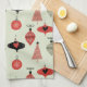 Lleve un toque de elegancia retro a su cocina en esta temporada de vacaciones con nuestra toalla de cocina de diseño de Navidades modernos de mediados de siglo. Esta toalla, con una paleta festiva de rojo, rosa, verde y negro, muestra motivos de época. Perfecto para añadir un toque de diseño a su decoración de vacaciones o como un regalo para los amantes de la cosecha.