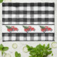 Añada un toque de ambiente de granja a las vacaciones con estas bonitas toallas de cocina con cheques negros y un camión rojo cargando un árbol de Navidad.
