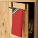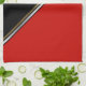 Toalla de mano roja y negra con rayas de oro y plata para dividir los colores.