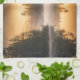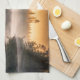 El río fluye entre inmensos pinos, la niebla se levanta del agua fría de la mañana a través de los pinos