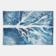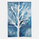 Cuadros acuáticos blancos y azules de temática invernal de un abedul blanco con fondo de nieve. Obra de arte original con un tema Navidad. Navidades azules y blancos.