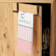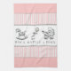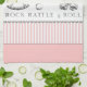 Creativa toalla decorativa de ducha de bebé "Rock, Rattle and Roll" con rayas rosas y juguetes de bebé de plata.