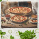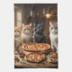 En Las Imágenes Se Muestran Cuatro Gatos Sentados Alrededor De Una Mesa Con Una Pizza Preparada Para Comer.