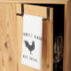 Celebra la vida en la granja con esta linda toalla personalizada de cocina que incluye tu nombre familiar o el nombre de la granja y año establecido en letras grises de carbón oscuro acentuadas con un ilustracion de pollo.