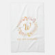 Toalla de cocina con una corona floral de color acuático pintada a mano en bonitos colores estéticos otoñales, personalizada con su nombre y inicial.