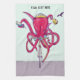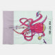 Un gracioso ilustracion personalizado de un pulpo montando una bicicleta. Este pulpo ciclista está en bicicleta de carretera, como en una carrera de turismo. El pulpo gracioso tiene una botella de agua y una campana.