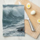 Olas oceánicas con gaviotas volando sobre sus cabezas y un barco a lo lejos