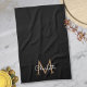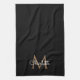 Toalla de cocina con monograma negro y dorado elegante. Puedes personalizar el nombre, monograma y personalizar la fuente y los colores para crear tu propio diseño único. Diseñado por Thisisnotme©