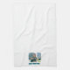 Añade tu propia foto familiar y mensaje de texto personalizado a una toalla de cocina. Personalizar el estilo de fuente deportivo de novedad, color verde azulado oscuro y tamaño. Cambie el fondo blanco de esta toalla. La foto cubre la forma de rectángulo de trazo de pincel grueso.