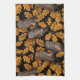 Lechuzas en el roble otoñal; patrón sin soldadura pintado a mano
