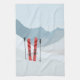Resumen del paisaje invernal con vistas panorámicas a las montañas, equipo de esquí rojo, senderos y cielo azul