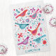 Pájaros acuáticos modernos y contemporáneos y flores silvestres en tonos rojos, rosados, violetas y verde azulados sobre un fondo blanco. Arte original de Nic Squirrell. Cambie el nombre para personalizarlo.