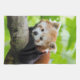 Un Panda Rojo colgando de una rama de árbol.