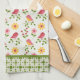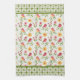 El panel de inspiración retro caprichosa presenta pájaros rosados en ramas con flores amarillas rodeados de un patrón de cuadrícula de puntos verdes