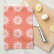 Esta mandala blanca se sienta sobre un fondo de papaya naranja o salmón. Los colores son claros y cálidos. Parte de la colección de Mandala de Fenten.