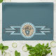 Diseño de garra de oso nativo americano en color turquesa y beige con formas geométricas.