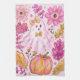 Paño De Cocina Pastel Pink Halloween Ghost with Flowers and Pumpk