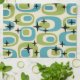 Colorido retro de mediados del siglo Moderno patrón atómico en verde y azul.