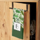 Elegante toalla de cocina Monograma Verde patrón Botánico.