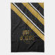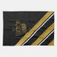Esta toalla de cocina, que forma parte de un conjunto de diseño coordinado para Navidades, presenta rayas diagonales en tonos dorados, negros y blancos. Se ha proporcionado texto opcional de 'Happy Holidays' y una plantilla para agregar tu nombre y/o otro texto. Busque ID861 a ID864 para ver opciones de color adicionales y otros productos en este moderno conjunto de diseño de Navidades.
