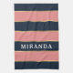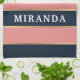 Estiloso, femenino, audaz rayas modernas de color rosa y azul marino separadas por bandas doradas más pequeñas. Una plantilla de nombre de personalizable se muestra encima del patrón. Un regalo personalizado con un ambiente femenino.