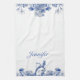 Crea un regalo personalizado con un aspecto elegante. Esta toalla de cocina tiene ilustraciones florales azules y blancos con un acento de pájaro que parece vintage china. Está listo para ser personalizado con un nombre que coincida con las letras azules.