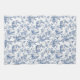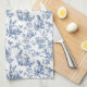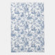 La encantadora toalla de cocina temática de primavera presenta un estilo de tela de Jouy, en tonos azules y blancos, con conejillos, mariposas y flores de primavera.