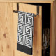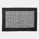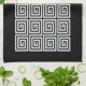 Diseño geométrico retro en blanco y negro. La "llave griega", también conocida como el "meandro", es un motivo geométrico repetitivo que se ha utilizado en edificios, artes decorativas, joyas e incluso ropas durante siglos. El patrón se puede encontrar en una variedad de formas. En su punto más básico, es una banda que consiste en líneas horizontales y verticales cortas, conectadas a ángulos rectos.