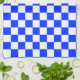 Diseño de patrones de cuadrados geométricos de verificación azul y blanco