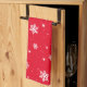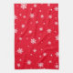 Esta toalla de cocina festiva presenta un bonito patrón de Navidades con estrellas blancas y copos de nieve sobre un fondo rojo personalizable. Haga clic en Editar diseño para cambiar el color de fondo.