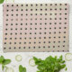 El patrón original de HomeWare en esta toalla de cocina es exactamente lo que se llama, un patrón de cuadrícula hecho de una fotografía original de la parte posterior de una silla. Los puntos cuadrados de gris oscuro y marrón en filas forman la cuadrícula. Las filas se curvan ligeramente como hace la silla. Arriba, los pequeños puntos cuadrados son agujeros con esquinas redondeadas y una dimensión de sombra alrededor de los bordes superior y derecho. Los colores del cuerpo de la silla son tonos mudos de la naturaleza, verde salvia pálido que se funde en malva pálida, luego suave, marrón arenoso, que parece como si hubieran sido pintados. Este diseño abstracto, con una combinación de colores sofisticados, tiene un aspecto muy moderno.