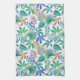 Hojas tropicales exuberantes sin fisuras en azul y verde sobre un fondo blanco.