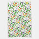 Patrón de verduras mixtas coloridas sobre toalla de cocina.