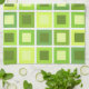 Un sencillo patrón de inspiración abstracta de mediados de siglo con cuadrados de baldosas en filas y columnas. Una gran idea de regalo para todo aquel que ame el arte minimalista del siglo XX. Este tiene los tonos de una cortina brillante, amarillo y verde claro.