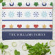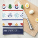 Navidades modernos toalla de cocina con un patrón de inspiración escandinava de gnomos Navidades, abetos, copos de nieve, estrellas y corazones en una paleta de Navidades intemporales. ¡Agrega tu nombre o apellido!
