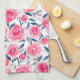 Toalla de cocina con romántico diseño floral de color flojo rosa rosado.