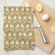 Una toalla de té con rayas botánicas de tulipán gráfico perfecta para un regalo de la anfitriona. Dorado y marfil.
