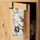 Esta toalla de cocina amarilla con motivos del colibrí floral tiene un patrón de jardín dibujado a mano con colibríes, flores exóticas y setas. Monograma de personalizable instalado dentro de un cuadrado negro moderno para un diseño limpio y personalizado.
