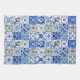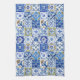 Paño De Cocina Patrón floral azul, blanco y amarillo mediterráneo