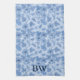 Paño De Cocina Patrón floral monograma azul claro y naval