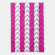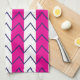 Toalla de cocina de patrón geométrico rosa y blanco de chevron Stripe. Este diseño presenta rayas verticales rosas y blancas y un patrón de rayas horizontales de chevron color azul marino.