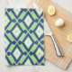 Paño De Cocina Patrón Ikat - Verde, Azul índigo y Blanco