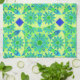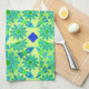 Toalla de cocina con un patrón de mandala de doce puntos en color turquesa, azul y verde limón acentuado con azul real