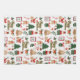 Patrón festivo moderno y divertido que incluye Santa, árboles de Navidad, dulces, hombres de pan de jengibre, baubles, regalos y hombres de nieve con saludos de "Navidades felices".