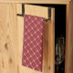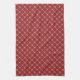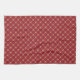 Esta toalla de cocina inspirada en Tudor muestra mi arte digital de un patrón cruzado de oro no metálico con flores de cuatro pétalos donde las líneas se cruzan. El fondo es un rojo profundo y magnífico.