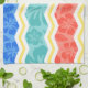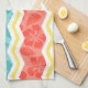 Paño De Cocina Patrón tropical azul cielo, rosa coral y amarillo