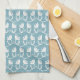 Una juguetona toalla verde azulada con rayas de tulipán botánico perfecta para un regalo de la anfitriona. Azul con marfil.