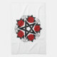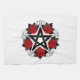 Pentagrama negro con estampado, decorado con rosas rojas florecientes con hojas sobre fondo blanco. Estilo tatuaje.