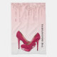Un diseño moderno y de moda en una toalla de cocina. El fondo tiene una imagen de goteo de purpurina rosa brillante, en la parte superior. El resto del fondo es un delicado degradado de color rosa pastel. Un par de tacones rosados le dan un toque de diseño.