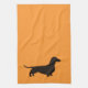 Toalla de cocina de pelo corto de la silueta del Dachshund. Una toalla de cocina decorativa para los amantes del perro de la salchicha de Frankfurt. Esta toalla de mano linda se puede plegar una manija del armario de cocina para exhibir su admiración para los perros del weenie. Un regalo de la diversión para los amantes estándar y miniatura del Dachshund. Mundo del Doodle de Jenn de la visita para aún más diseños de Doxie y decoración casera y regalos del amante del mascota.